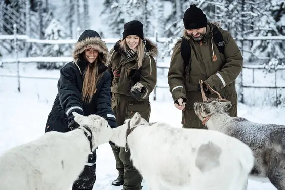 3-hour evening experience. Everything is included: sleigh ride to our private lakeside park, reindeer time, skating on a maintained natural ice track, campfire snacks, sauna + ice bath, and more winter activities. With clear skies, you may also see the Northern Lights.