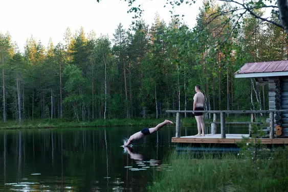 Travel through beautiful forest scenery to Lupland’s Summer Activity Park and enjoy a relaxed day by a lake — sauna, swim, fish, canoe or SUP, ride an e-fatbike, and unwind at our cozy kota hut. Perfect for all ages!